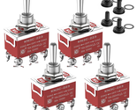 Momentary Toggle Switch 12V DC 3 Way 30 Amp DPDT 6 Pin (On)-Off-(On) Waterproof Marine Toggle Switch 12 Volt Heavy Duty with Boot Cover Cap for Automotive Boat Auto Air Train - 4Pack