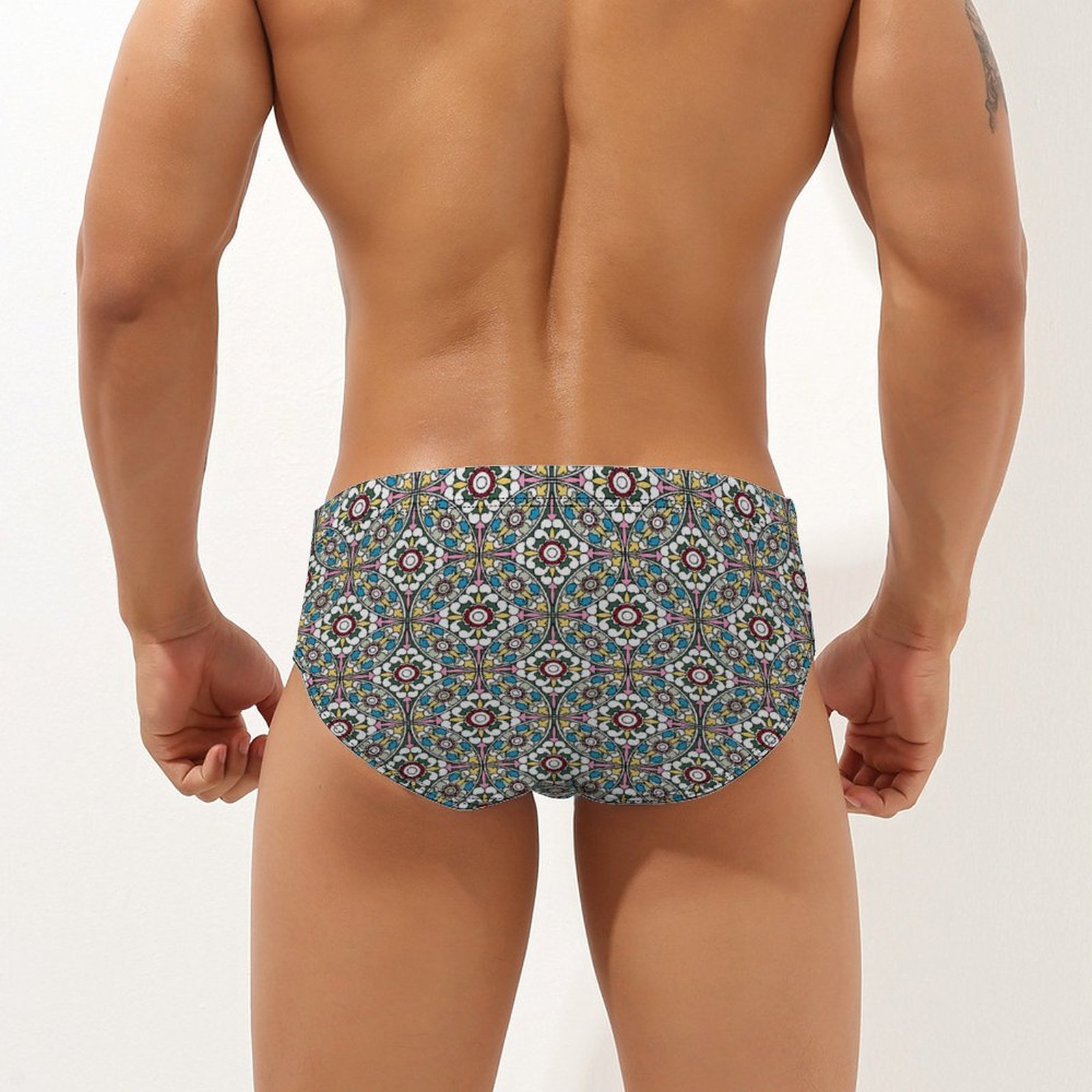 Men swim briefs chinese traditional style flower floral underwear for sports swim breathable soft athletic swimwear summer