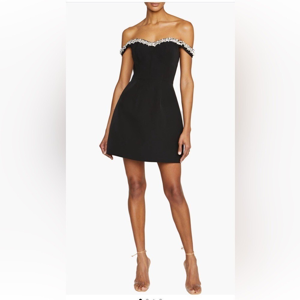 - Monique Lhuillier Blaire Embellished Off the Shoulder Minidress, Black 8 NWT