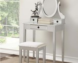 Moniys Wood Moniya Makeup Vanity Table and Stool Set, Silver