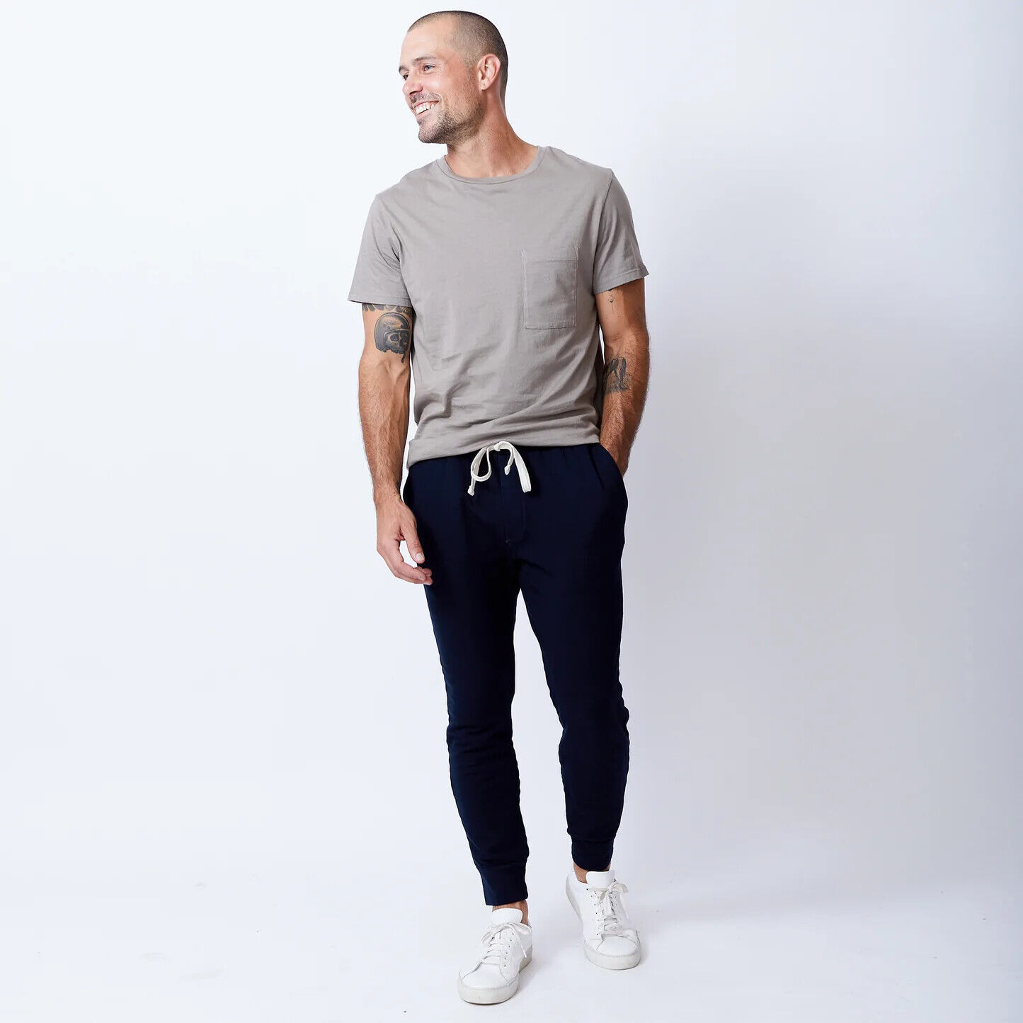 Monrow Men's Super soft Fleece Jogger in Inca Blue-Size 2XL