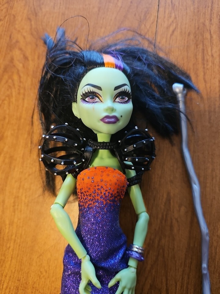 - Monster High Casta Fierce Doll 2014 Mattel Green Witch Singer W/ Broom Stand