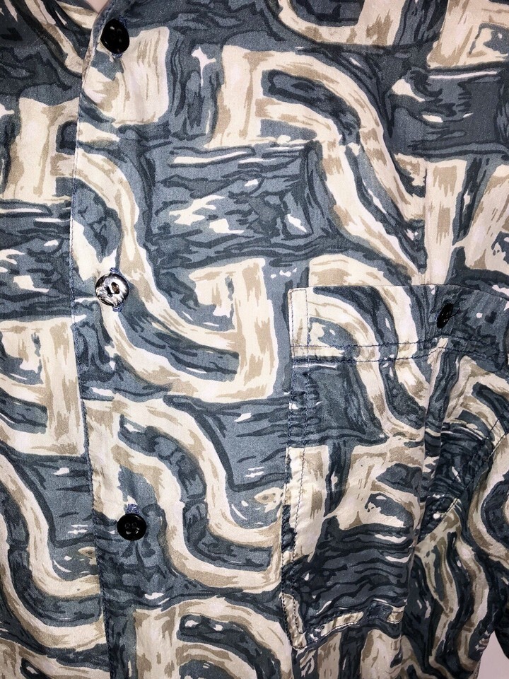 - Montage Blue Abstract Hawaiian Men’s Casual Shirt Size M SILK Soft Light Weight