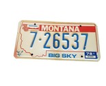 This vintage Montana license plate from 1976 with a '78 tag celebrates America's Bicentennial and the state's nickname, Big Sky. The plate bears the number 7-26537 and features a skull, making it a perfect addition to your mancave or collection of automobilia. It has been previously owned and is ready for display. The plate originates from Montana and is a great piece of American history. Don't miss out on this unique piece!