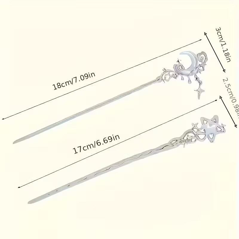 Moon and Star Silver Hair Stick Set – Vintage Metal Hairpin Accessories