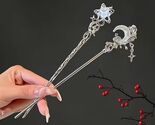 Elevate your hairstyle with a celestial touch using this enchanting Moon Star Silver Hair Stick Set. These elegant metal hairpins are beautifully crafted with detailed moon and star charms, shimmering crystal-like accents, and delicate hanging ornaments that bring fantasy and elegance to any updo.