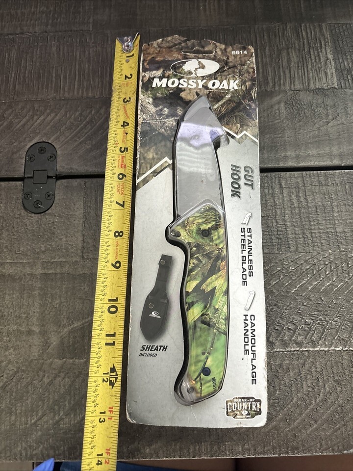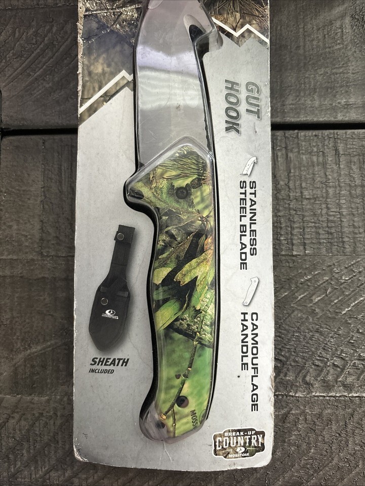 - Moossy Oak Gut Hook Hunting Knife 4.5" Steel Blade New Sheath EG