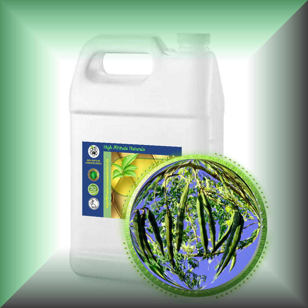 HIGH ALTITUDE NATURALS? Moringa oil is extracted from the fruit of Moringa Oleifera plant (also known as the horseradish tree, ben oil tree, or drumstick tree) without the use of any chemicals, and then refined to maintain cosmetic purity. Moringa oil is popular in personal care and cosmetic industry due to its emollient and skin moisturizing properties. Moringa oil is highly resistant to oxidation. It is commonly compared to olive oil, although it is a much lighter oil. Moringa oil, or Ben oil, is a popular element in personal care products such as hair creams, conditioners, skin lotions and body butters. It is recommended in massage and aromatherapy since it spreads so easily on the skin without leaving a greasy residue. Moringa oil has a variety of medicinal uses. It contains a type of acid called chlorogenic and behenic acid. Moringa is rich in numerous vitamins, proteins, and minerals, such as: Vit. A, B1, B2, B3 (Niacin), B5 (Pantothenic Acid), B6, C, Folate, Calcium, Iron, Magnesium, Manganese, Phosphorus, Potassium, Sodium, Zinc, and produces a powerful healing, anti-aging, and rejuvenating effect on the skin.