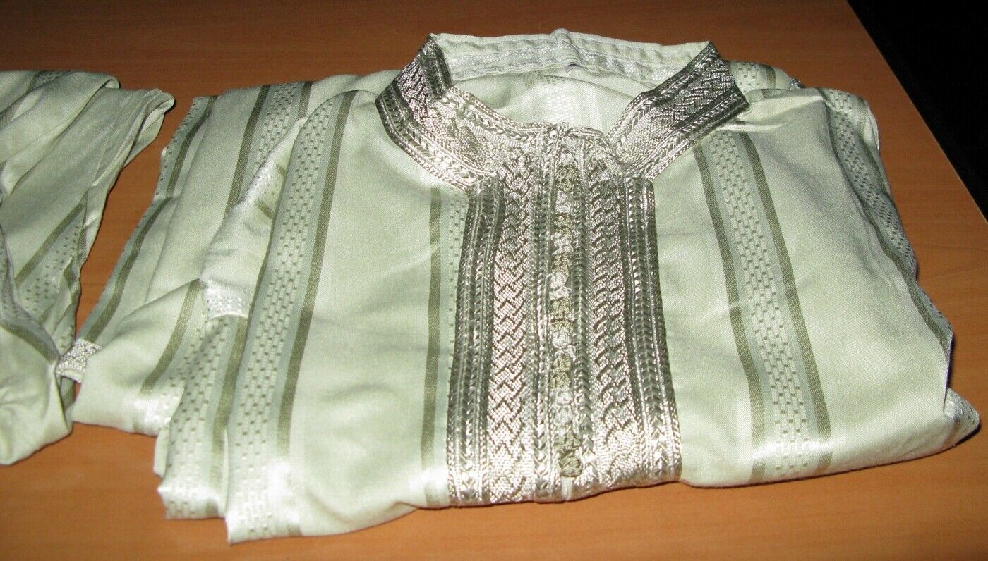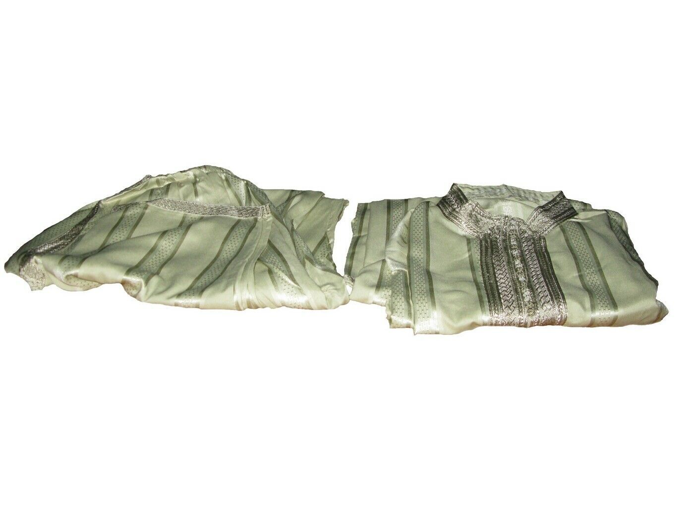 Moroccan men two piece Kaftan, Moroccan long green kaftan with matching pant