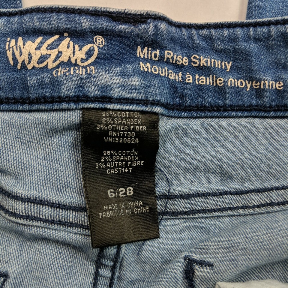 - Mossimo Mid Rise Skinny Jeans 6/28 Destroyed Flecked Stretch Medium Wash Denim