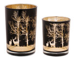 For those who find peace in the quiet of the forest and excitement in the thrill of the hunt, the Mossy Oak Deer Candle Holder (Set of 2) is the perfect way to bring the spirit of the wilderness into your space. These glass candle holders features a sleek black finish with a gold-tone interior, casting a warm, flickering glow through an intricately designed woodland forest with deer accents. Whether you re setting the mood for a cozy night at the cabin, decorating your hunting lodge, or creating a rustic-inspired retreat, these votives Brings a peaceful, nature-inspired look to any space. to any setting. Created in collaboration with Mossy Oak, let the soft candlelight remind you of the heritage, stewardship, and deep respect for the great outdoors.