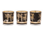 For those who find peace in the quiet of the forest and excitement in the thrill of the hunt, the Mossy Oak Deer Votive (Set of 3) is the perfect way to bring the spirit of the wilderness into your space. These glass votive candle holders features a sleek black finish with a gold-tone interior, casting a warm, flickering glow through an intricately designed woodland forest with deer accents. Whether you re setting the mood for a cozy night at the cabin, decorating your hunting lodge, or creating a rustic-inspired retreat, these votives Brings a peaceful, nature-inspired look to any space. to any setting. Created in collaboration with Mossy Oak, let the soft candlelight remind you of the heritage, stewardship, and deep respect for the great outdoors.