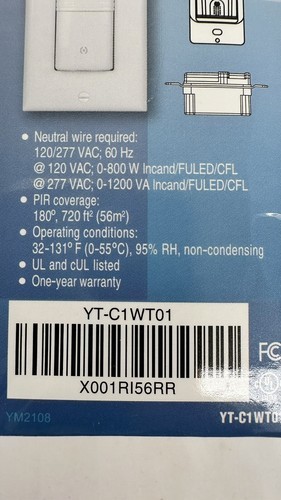 - Motion Sensor Wall Switch PIR Vacancy & Occupancy Sensor YT-C1WT01 Neutral Wire