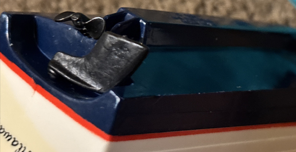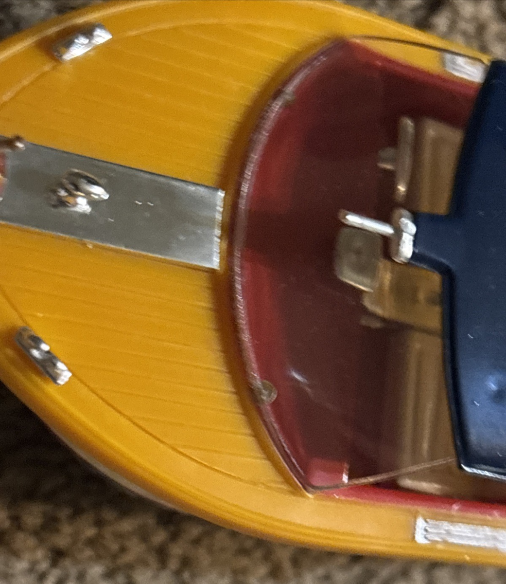 The Motorific Boaterific Runabout Boat is a vintage toy boat from 1967 made by the brand Ideal in the United States. Constructed from a mix of plastic, metal, and paper, this boaterific runabout boat is part of the marine toy boats theme and belongs to the hobby toys character family. This classic toy boat is sure to bring nostalgia and joy to collectors or enthusiasts of vintage toys and marine memorabilia.
