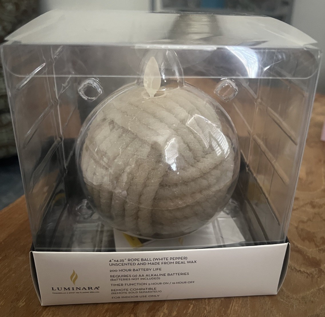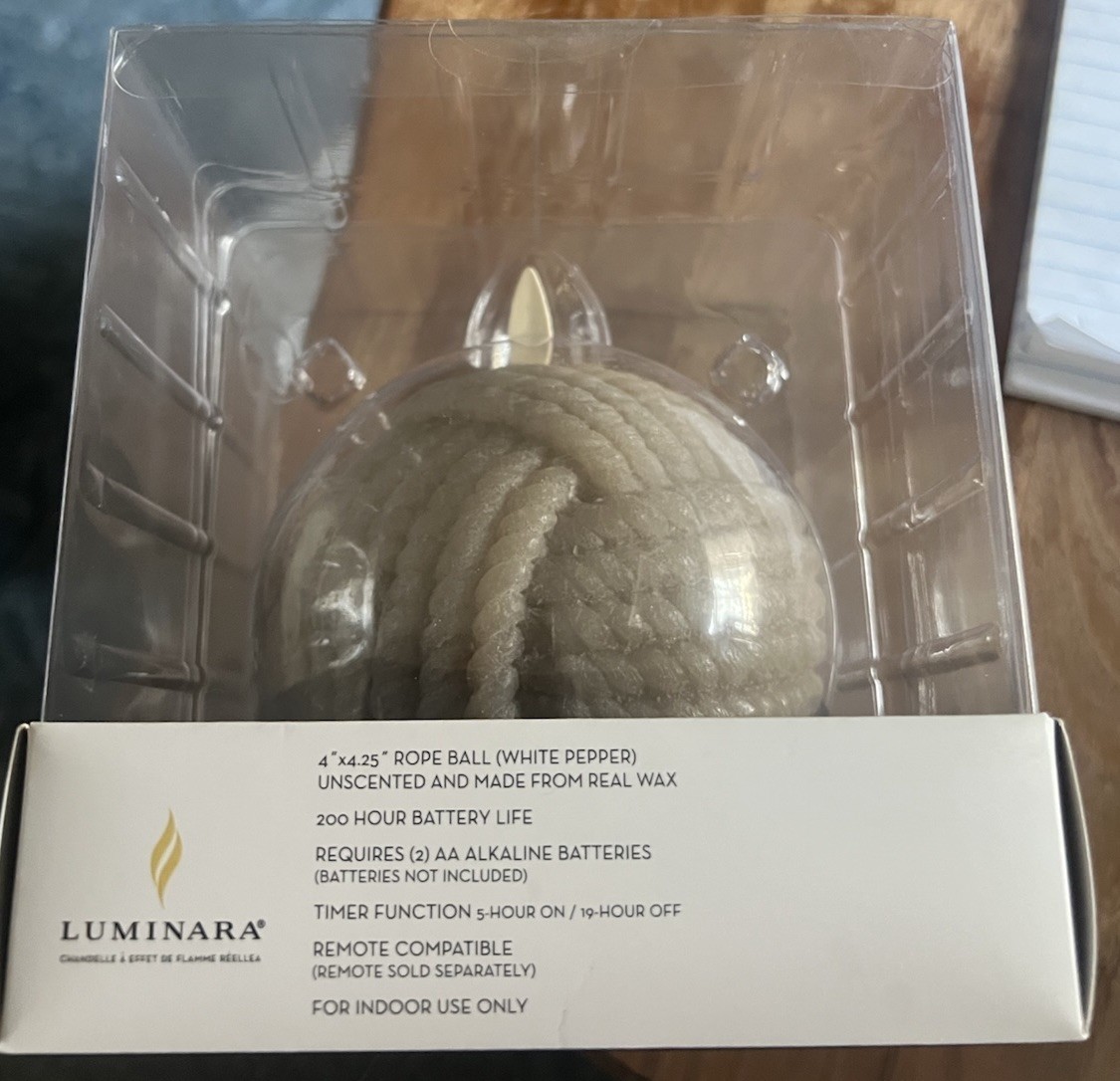 - Moving Flame LED Candle - Real Wax White Pepper Rope Ball - Timer, Flameless