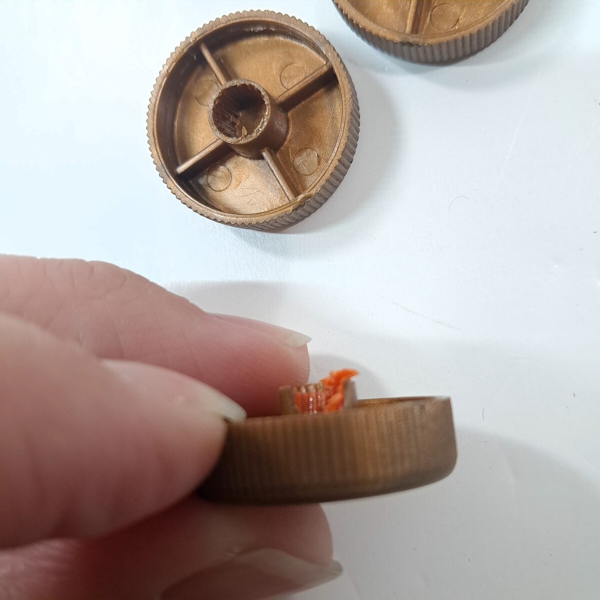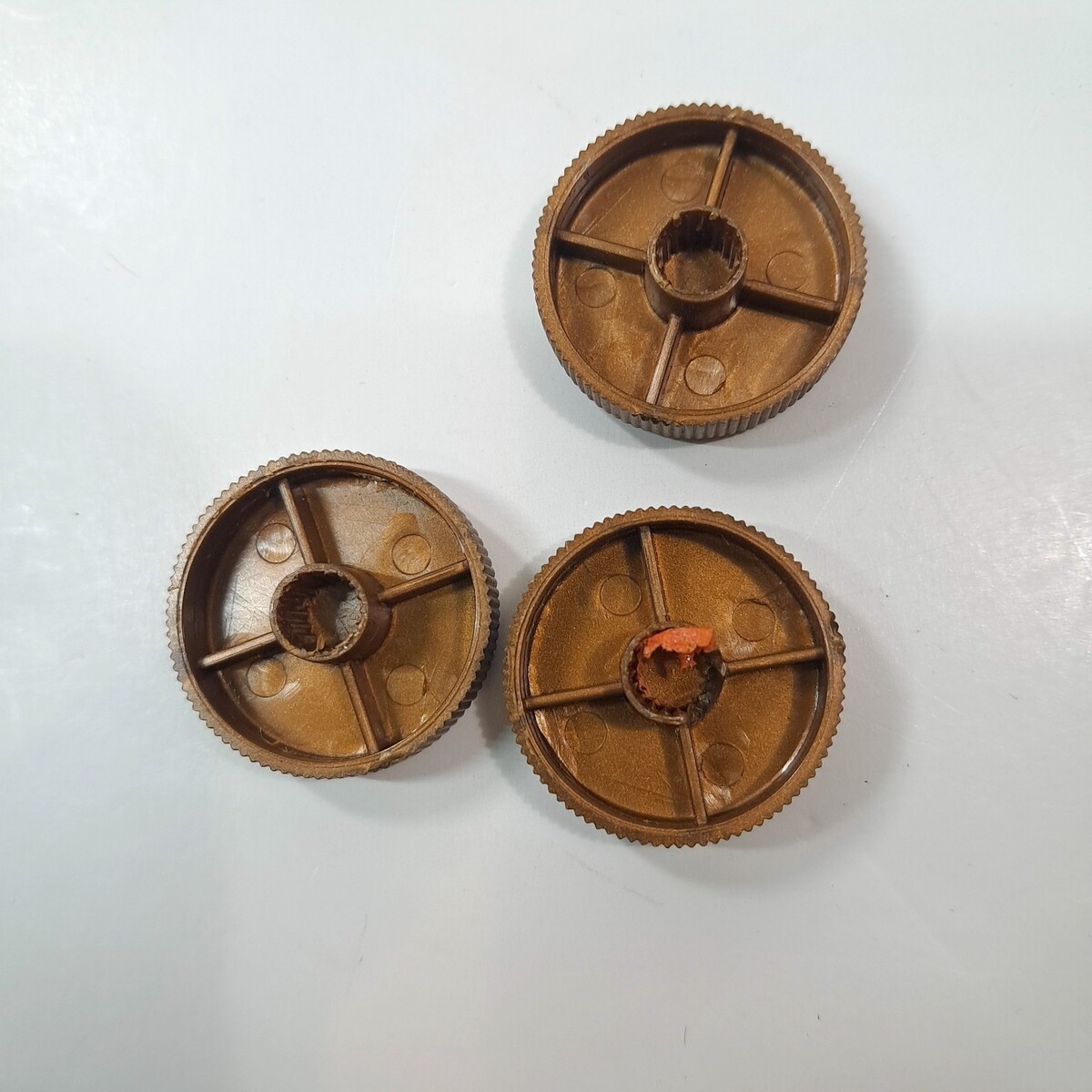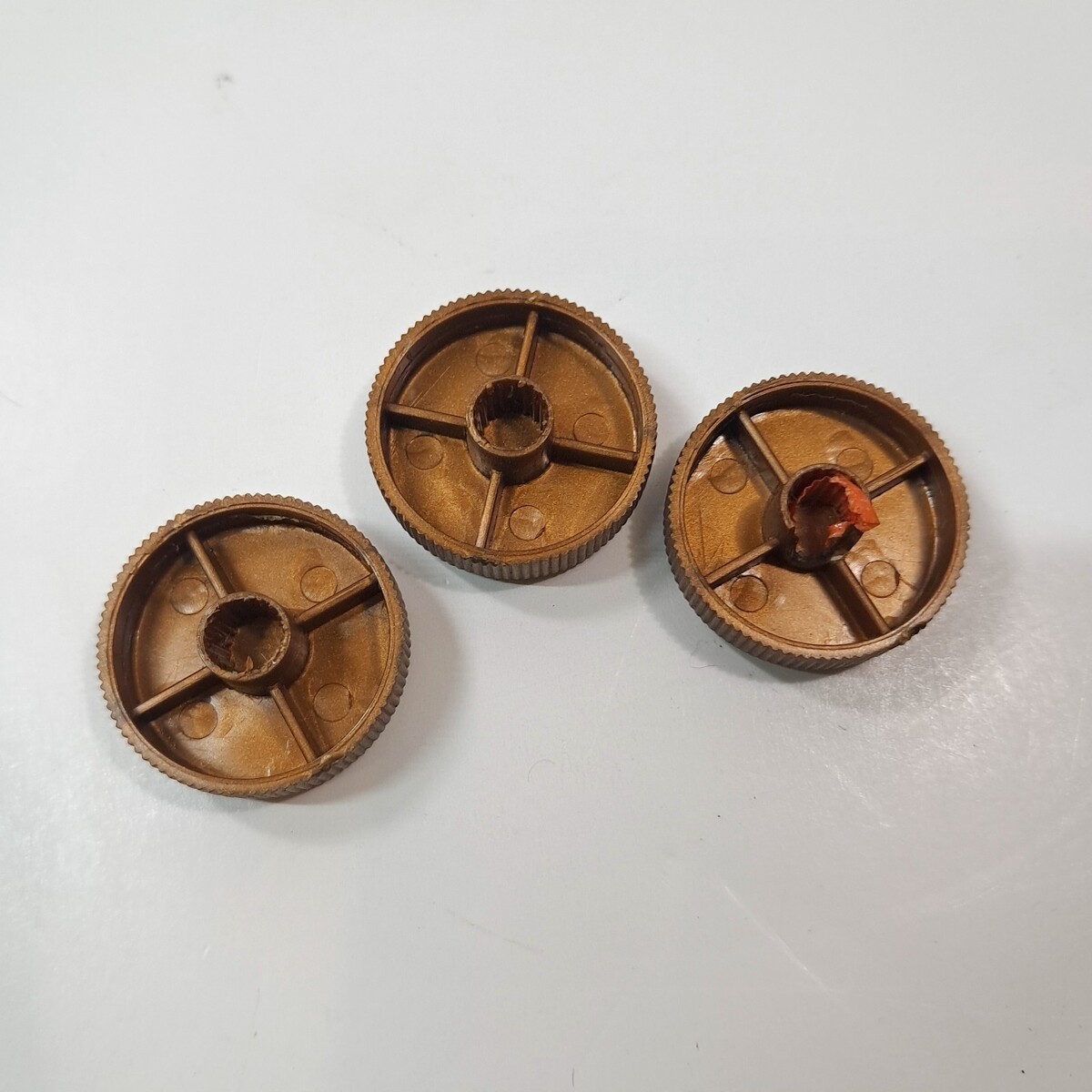 Includes 3 knobs for the Mr. Christmas karaoke receiver. One of the pegs on the inside is partially broken as shown.