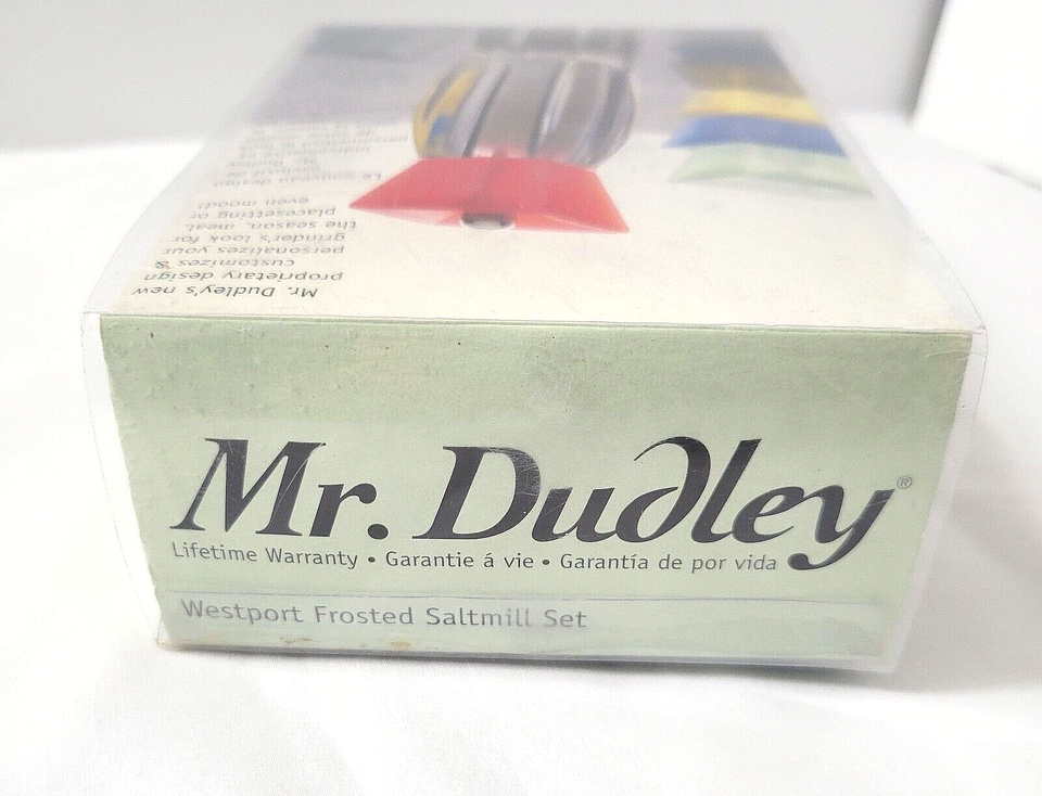 - Mr. Dudley NEW Clear Acrylic SALT MILL + 5 Color Tops Red Green Yellow Blue Aqua