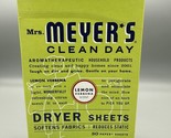 Mrs. Meyer's Clean Day Dryer Sheets Lemon Verbena 80 Sheets New