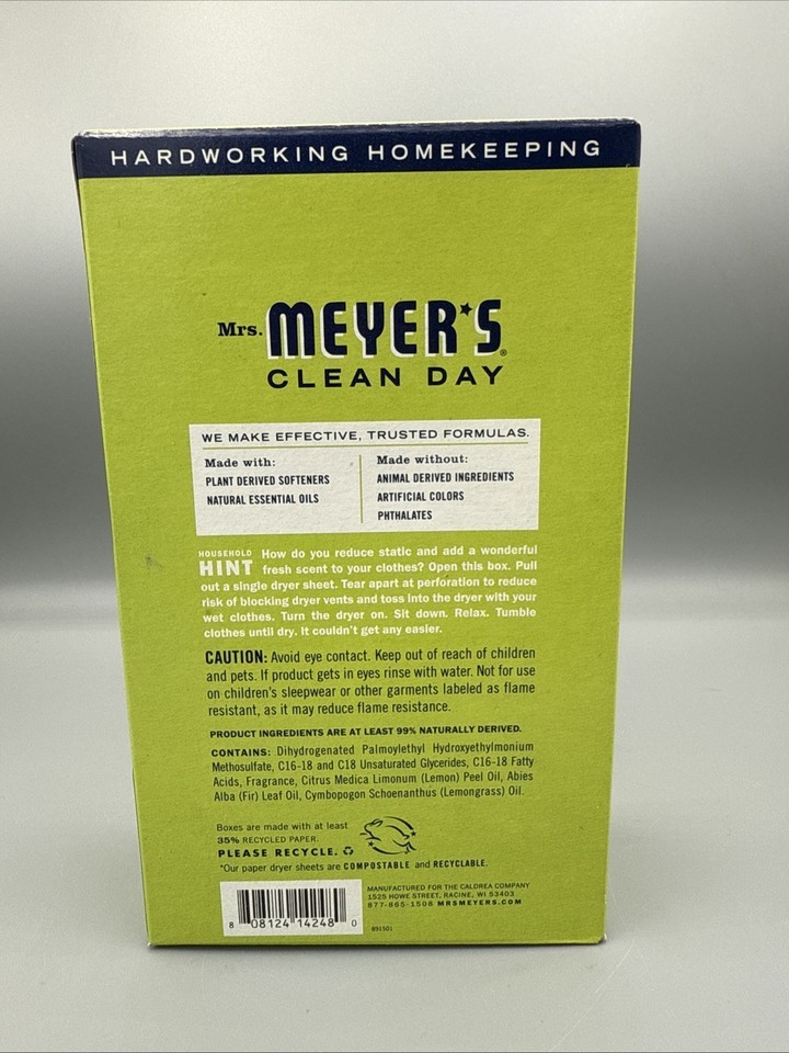 Mrs. Meyer's Clean Day Dryer Sheets Lemon Verbena 80 Sheets. Brand new.