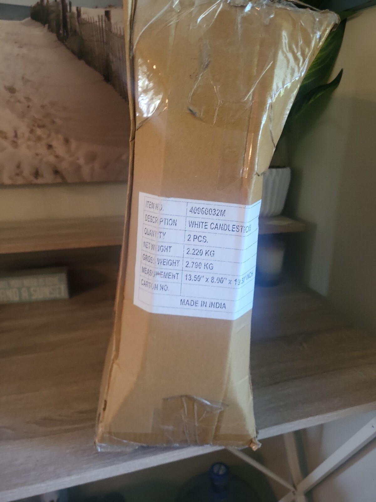 - Mudpie Tall Decorative White Metal Candle Holders Set of 2