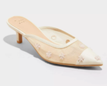 A New Day Sandali Mule Con Tacco Aperto Donna Crema Diana Fibbia Dorata 6.5 NWT