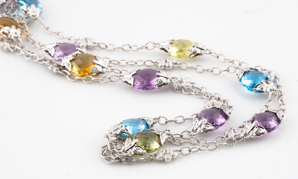 - Multi-Color Topaz and Diamond Briolette 14k White Gold Chain Necklace