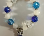 - Multi Faceted Bead Stretch Bracelet with White Gemstone Beads & Silver Owl Charm