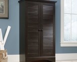 Multi-Purpose Wardrobe Armoire Storage Cabinet in Dark Brown Antique Wood Finish Multi-purpose cabinet Hidden storage behind louver-detailed doors Full upper shelf and four adjustable shelves Antiqued Paint finish