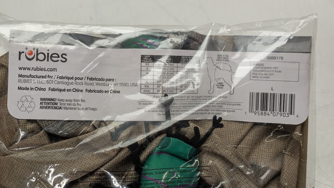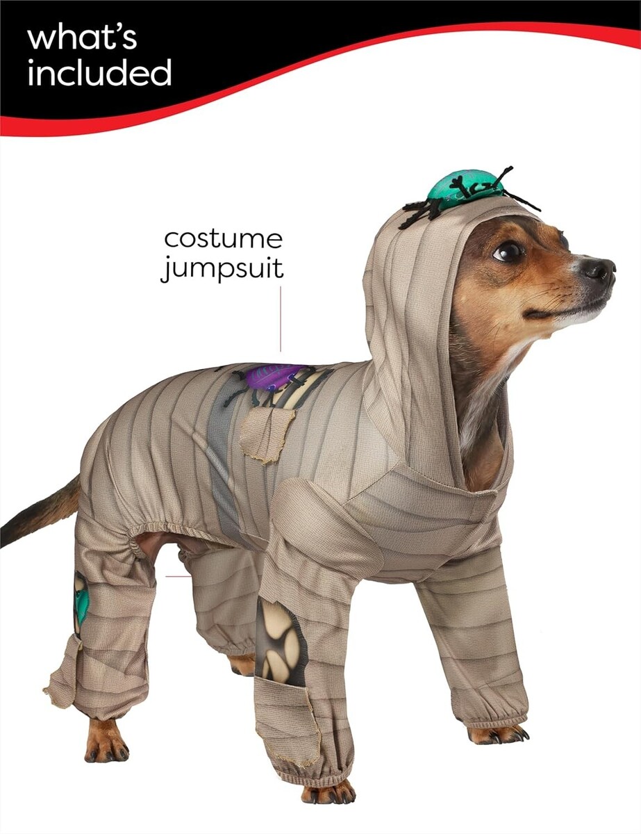 Rubies Mummy Pet Costume. THE RIGHT FIT: Pet size large (21-29LBS), when deciding size, note costumes run smaller than apparel. Refer to the size chart and sizing video before choosing. Do not select size based on breed alone, as fit may vary. Please refer to drop down size chart.