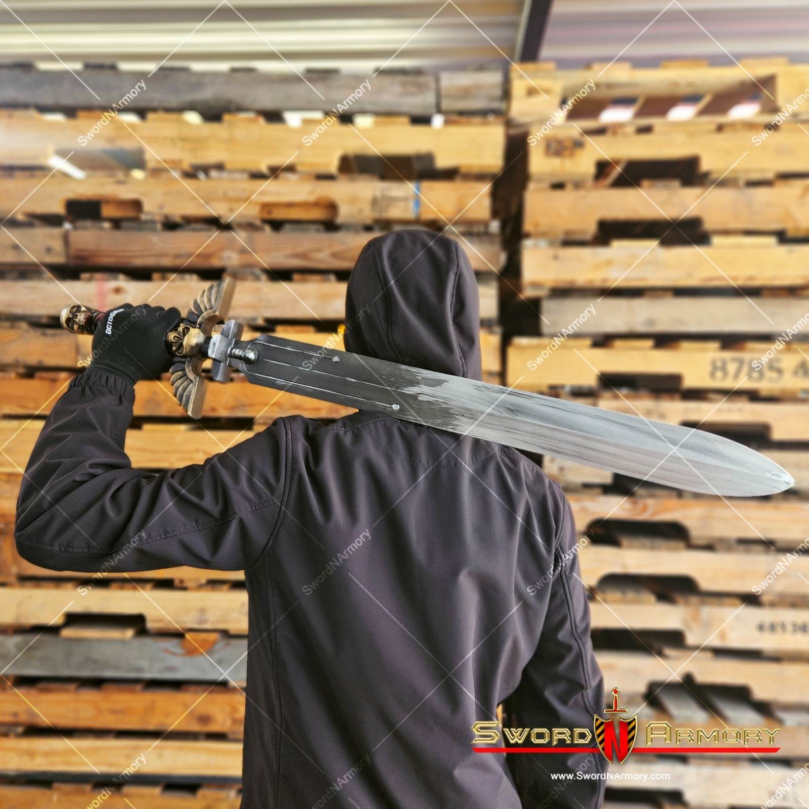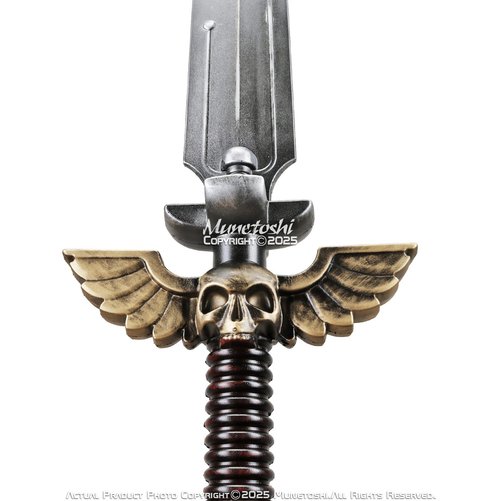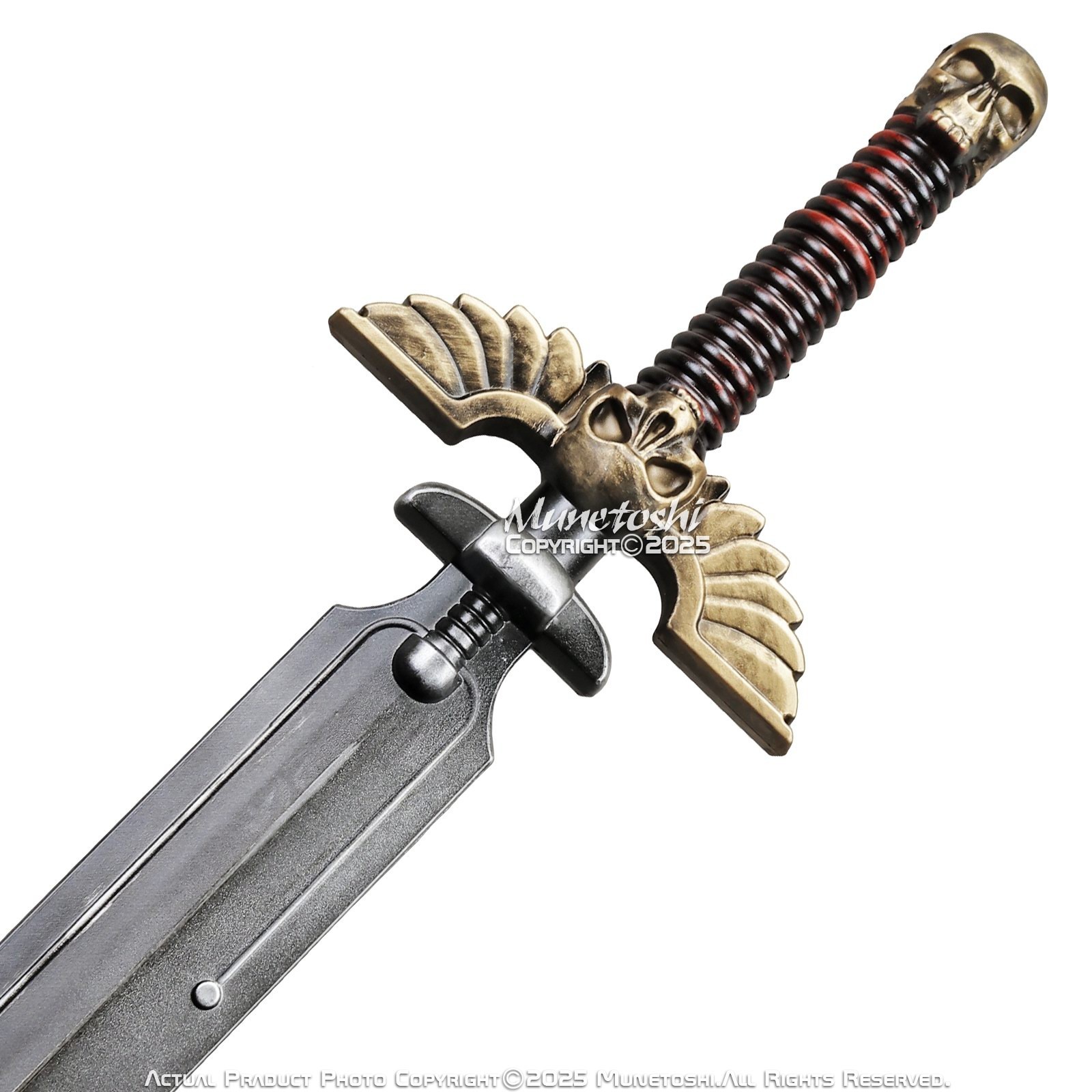 [Materials] Crafted from high-quality foam, this replica balances durability and lightweight comfort. The blade mirrors the sleek lines of the Power Sword, while the detailed handle?featuring a winged skull guard and ribbed texture?ensures a realistic, comfortable grip. The skull pommel adds a commanding presence, making it a true collector?s item.