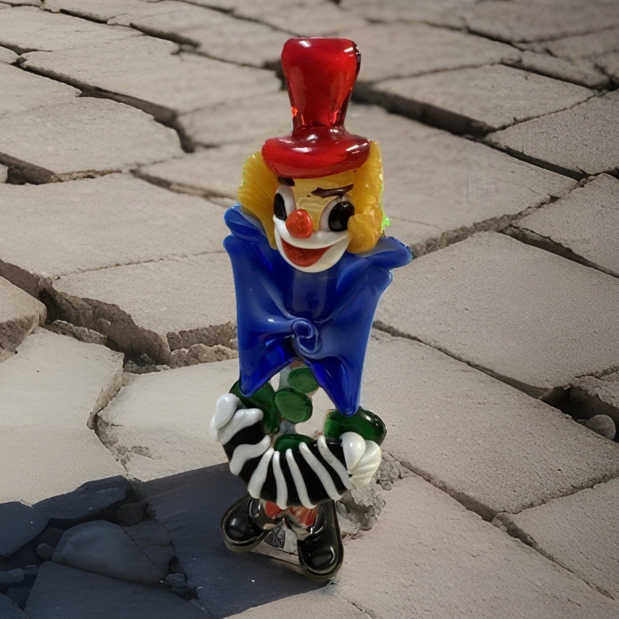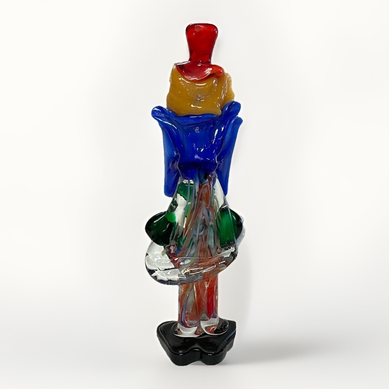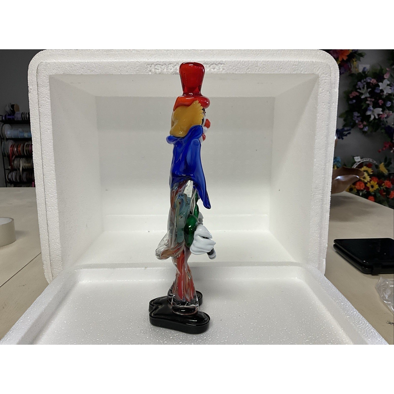 Keywords: Glass Clown Figurine, Murano Style Glass, Clown Decor, Whimsical Figurine, Collectible Clown, Circus Decor, Red Hat Clown, Accordion Clown, Colorful Figurine, Art Glass, Tabletop Decor, Home Decor, Clown Collectible
