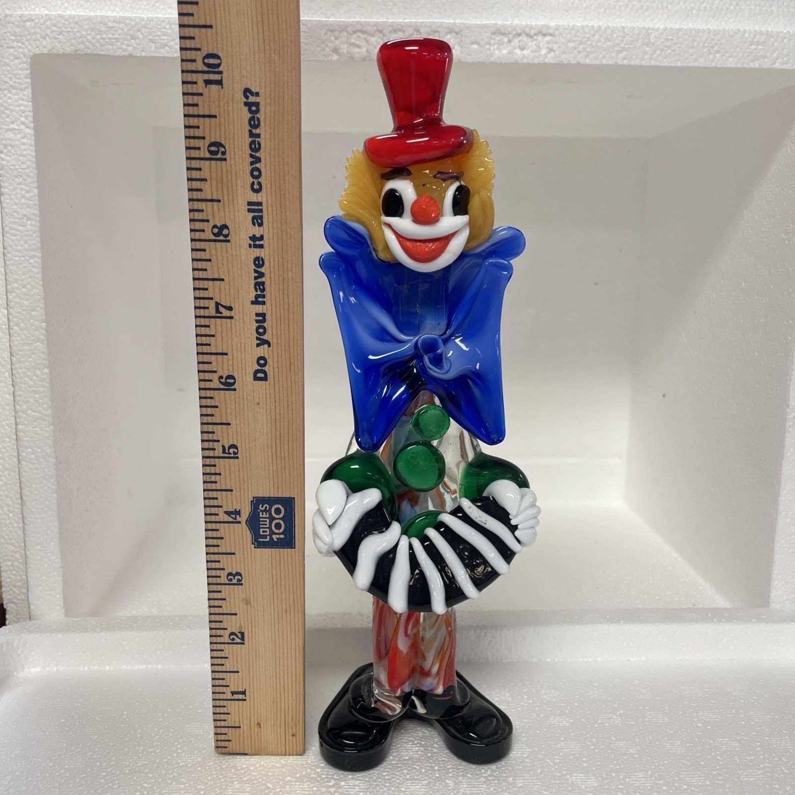 - Murano Glass Clown Figurine Accordion Red Hat Colorful Whimsical Decor