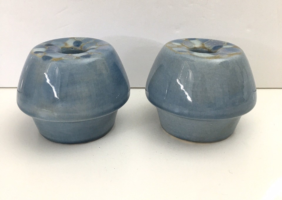 Lovely Pair of Blue Ceramic Mushroom Shaped Candlestick Holders