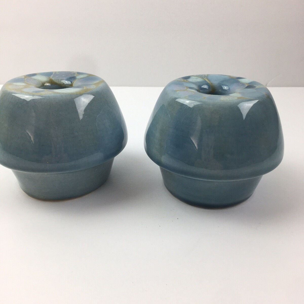 Lovely Pair of Blue Ceramic Mushroom Shaped Candlestick Holders