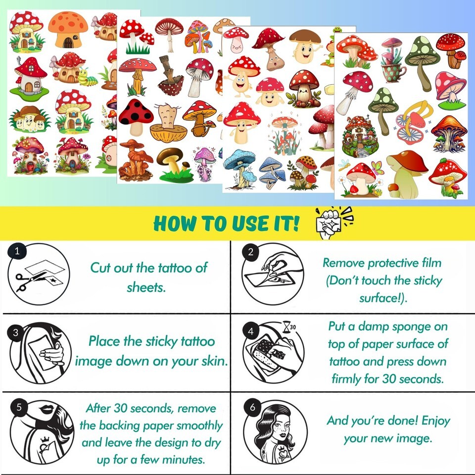Besides being charming party favors, these mushroom tattoos can also enhance party invitations, thank-you cards, or gift bags.