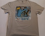 This is a men's T-shirt from the music television network MTV. The shirt features a graphic print of the network's iconic logo in ivory color. It has short sleeves and a crew neck, with a regular fit for maximum comfort. The shirt is made of cotton knit fabric, making it perfect for all seasons. The shirt is XL in size and beige in color, with accents of the MTV logo. It is a perfect addition to any fan's wardrobe. Normal wear.