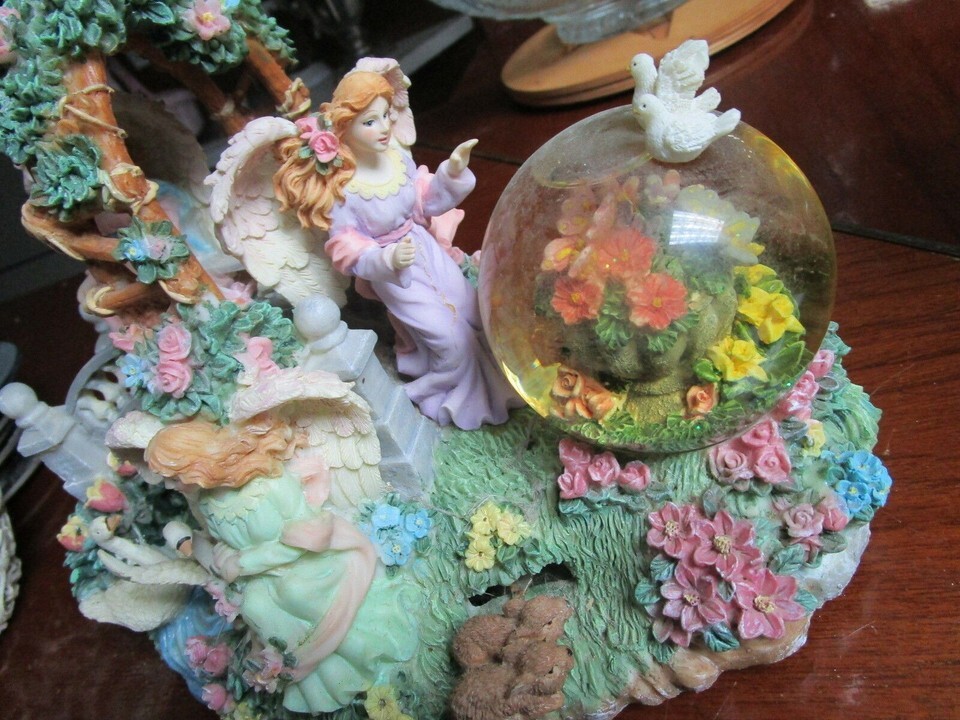 - Musical box, plays "Amazing Grace" Angels Sculpture on a bridge w/water globe[A]