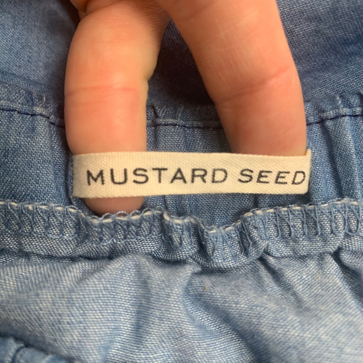 Elevate your wardrobe with this chic off-the-shoulder chambray top by Mustard Seed. Crafted from 100% Tencel for a soft, breathable fit, perfect for casual outings.