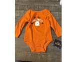 This product is a unisex baby and toddler one-piece size 3-6 months, perfect for dressing up your little one on their first Halloween. The bright orange color and Halloween theme make it a fun and festive outfit for a baby's debut into the world of costumes. The comfortable style of the onesie ensures your child will be snug and cozy while celebrating the holiday season.
