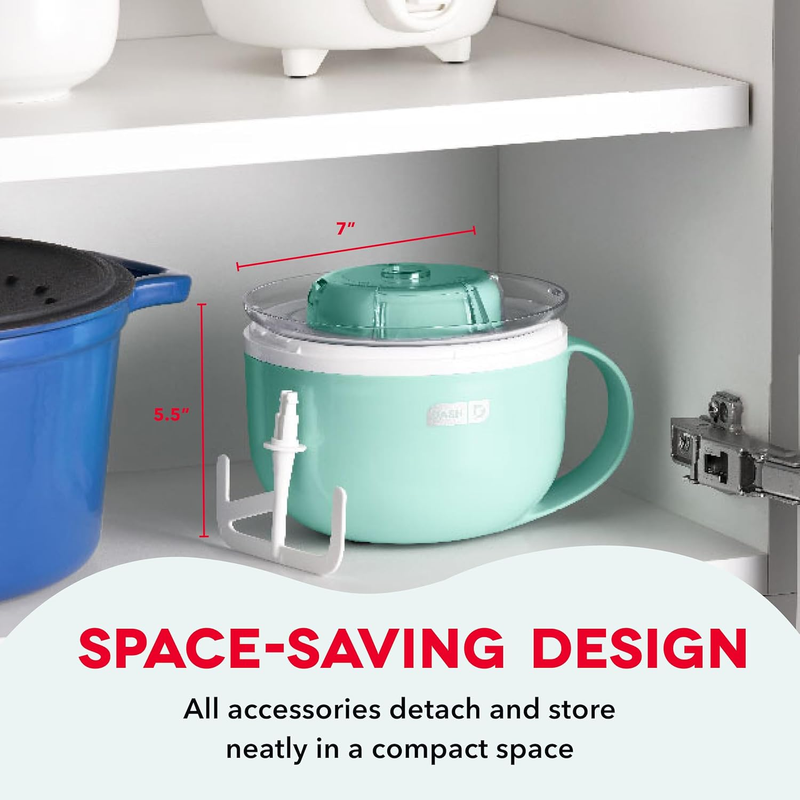 CONVENIENT AND SPACE-SAVING: The frozen dessert maker serves as a convenient and small ice cream machine. All accessories detach and store neatly inside the mug, perfect for kitchens with limited space.