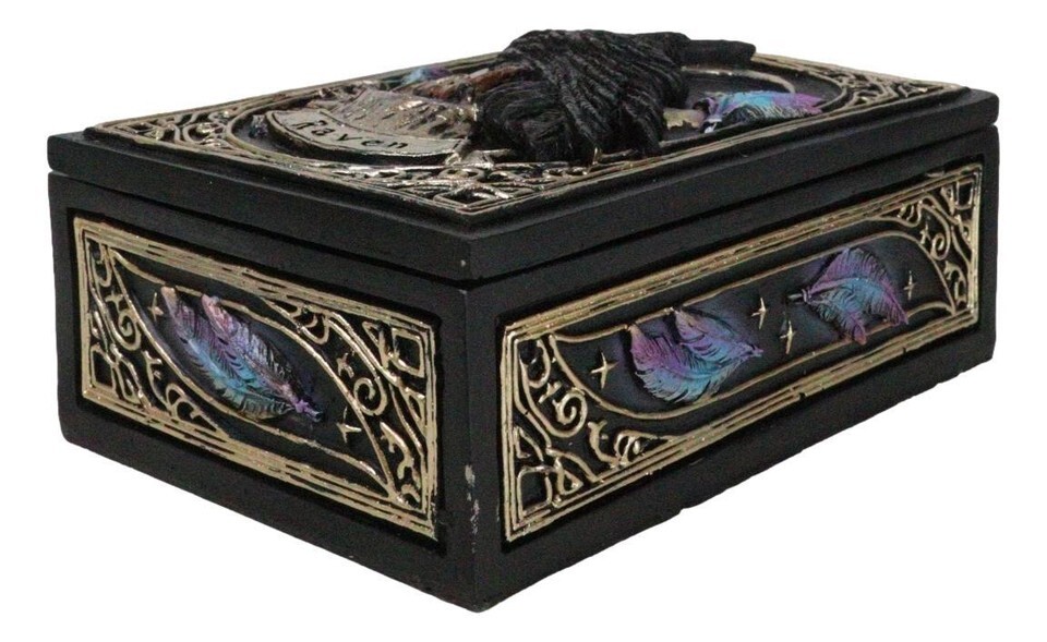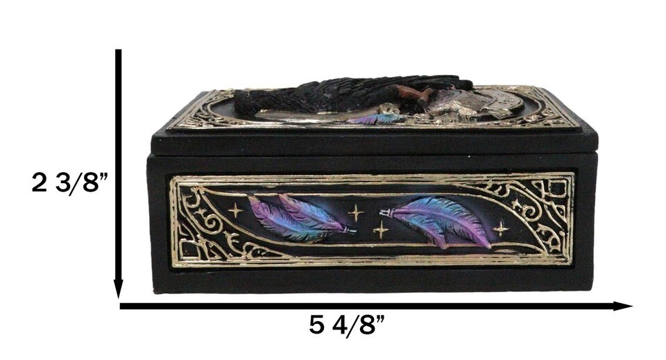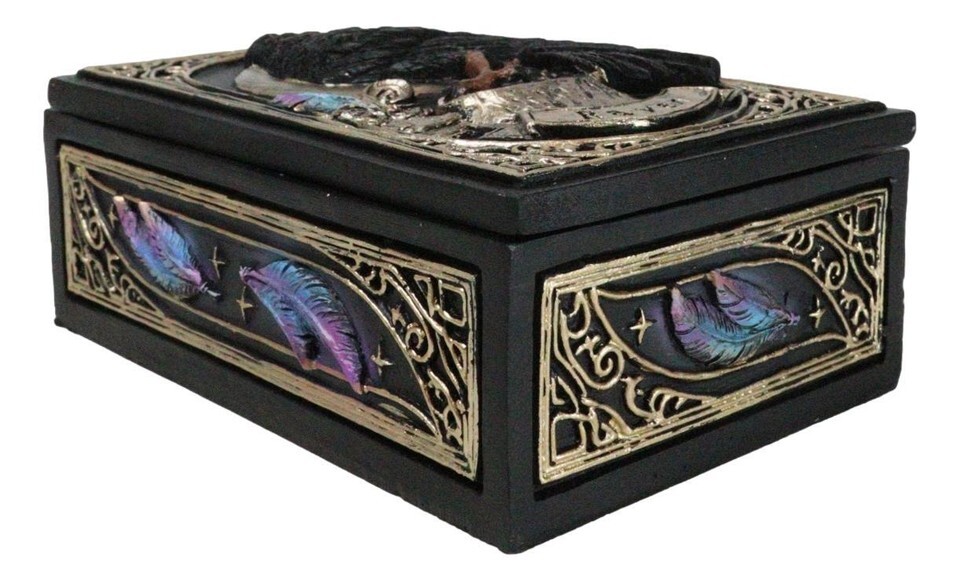 Mystic Raven Crow Crescent Moon Wicca Divination Ornate Tarot Cards Trinket Box