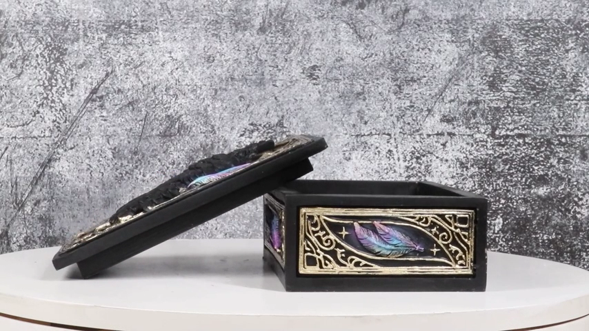 ? This Raven sculptural tarot card box with lid is made of polyresin, hand painted and polished individually.