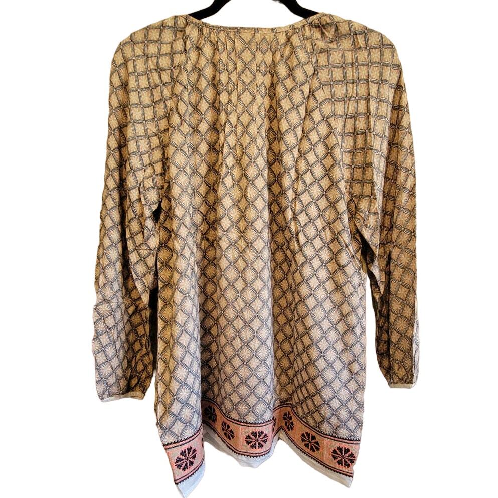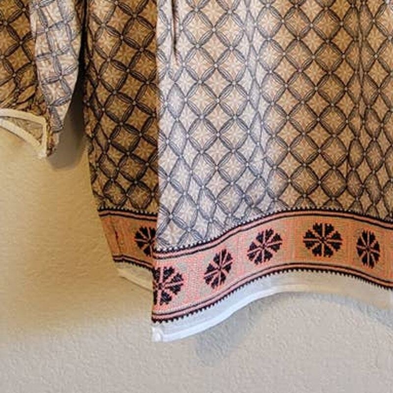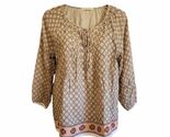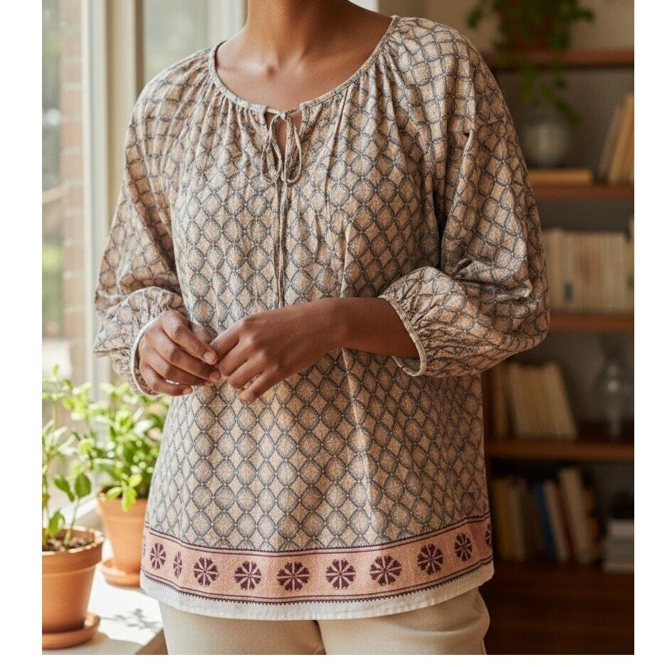 Mystree Womens Tunic Top Printed Boho Embroidered Border Gathered sleeves Small