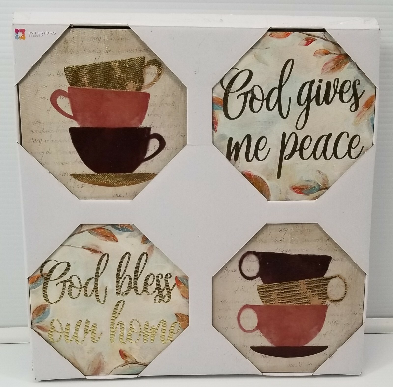 - N) Interior by Design Set of 4 Printed Canvas Inspirational Quote Coffee Decor