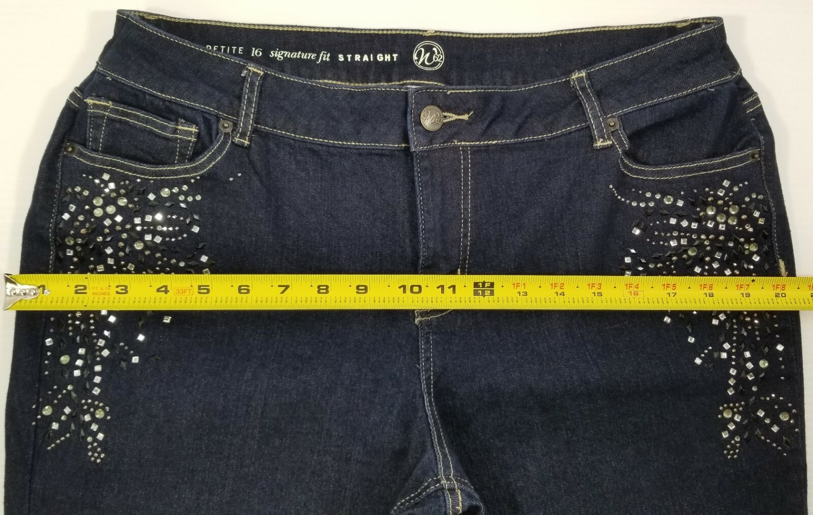 - N62 Women Petite 16 Signature Fit Straight Sparkly Studded Denim Blue Jeans