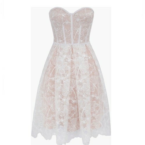 - NADINE MERABI Olivia Strapless Lace Dress, Designer Luxury Medium (8) White, NWT