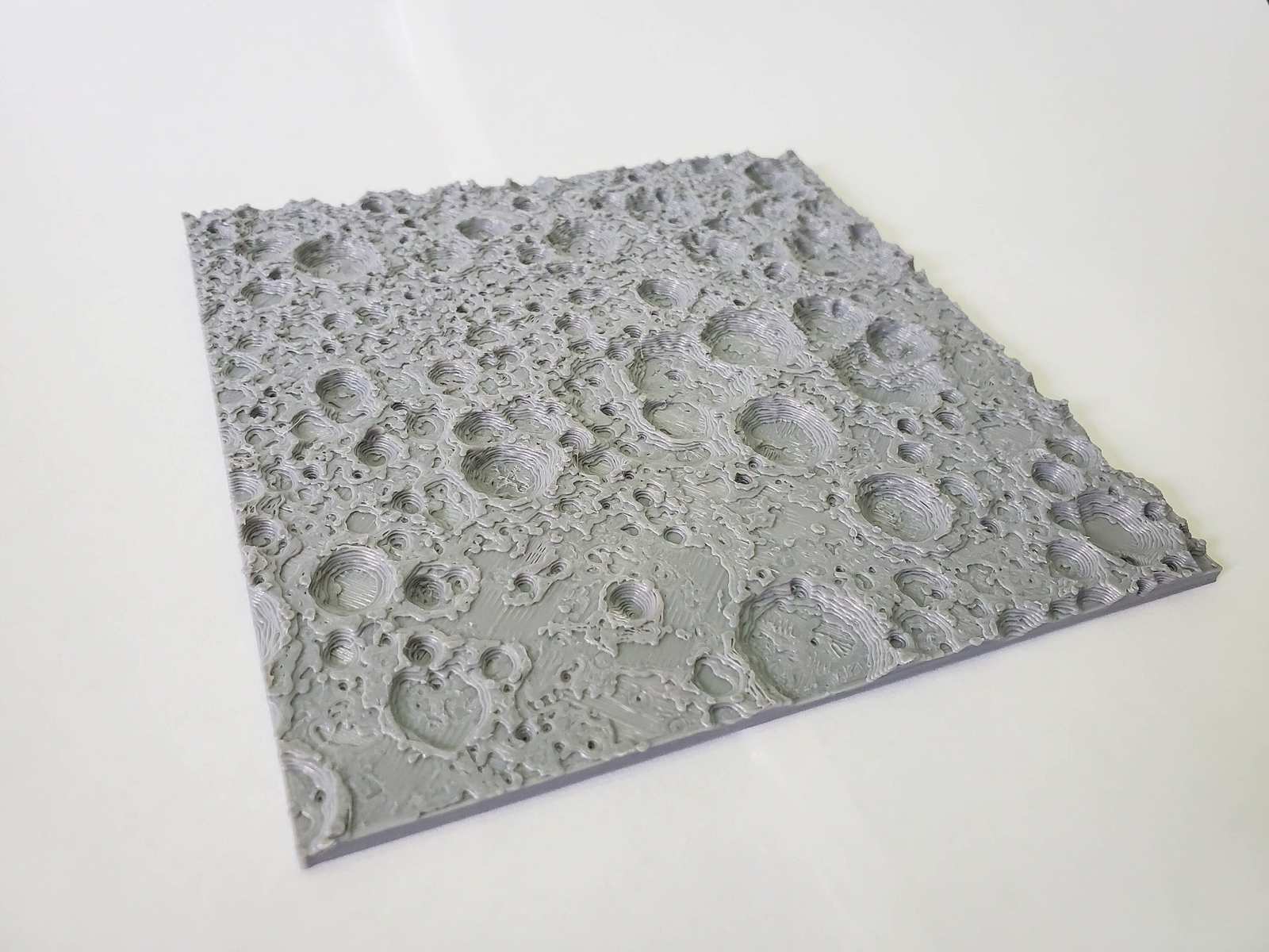 These two 3D topographical models demonstrate the differences between the near and far side of Earth's Moon. They are built from data taken by NASA from the Lunar Reconnaissance Orbiter which began orbiting the moon on June 23, 2009. The near side is smoother due to large lava flows that filled in many craters billions of years ago. These 3D Topographical maps cover an area 400km x 400km. 1cm = 30km. Data Credit : NASA/Goddard Lunar Reconnaissance Orbiter