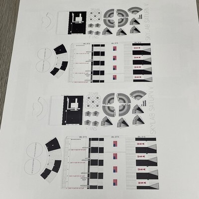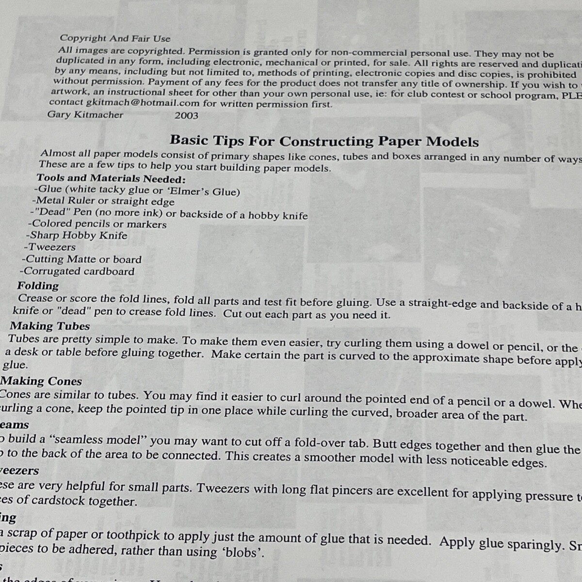 Preowned, good condition. Instructions and color printouts for a paper model. Printed on heavy copier paper. Also has an actual photo of the Apollo Saturn V rocket. Some bent pages in bottom right corner.