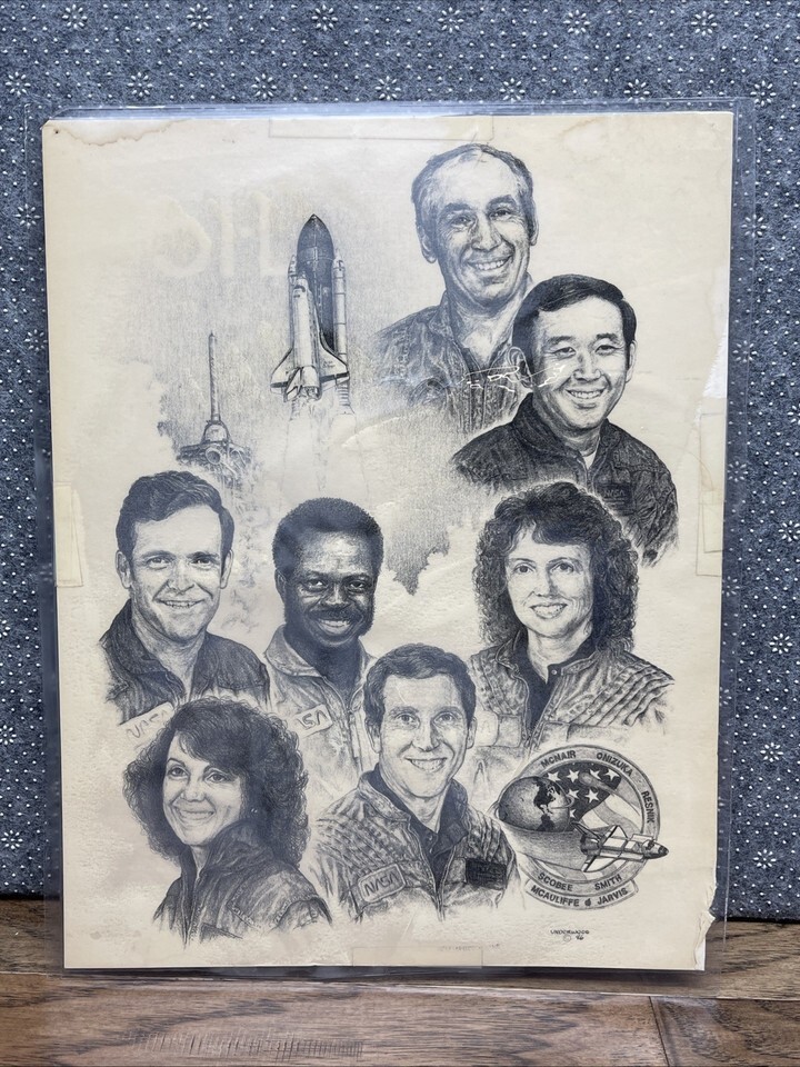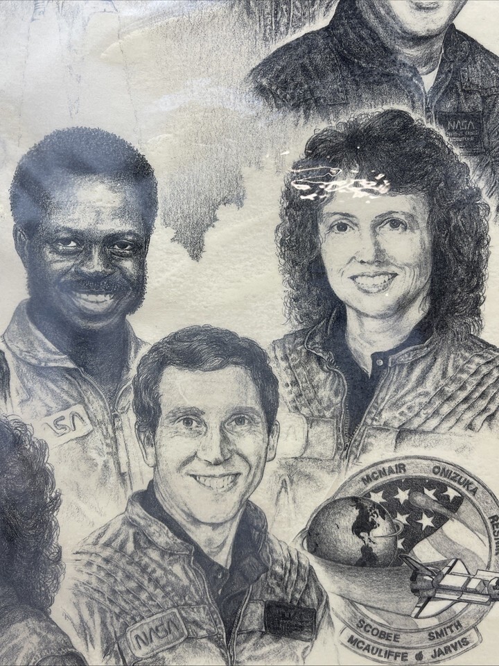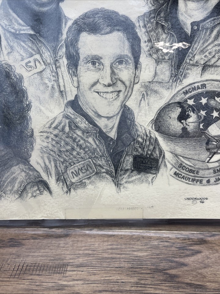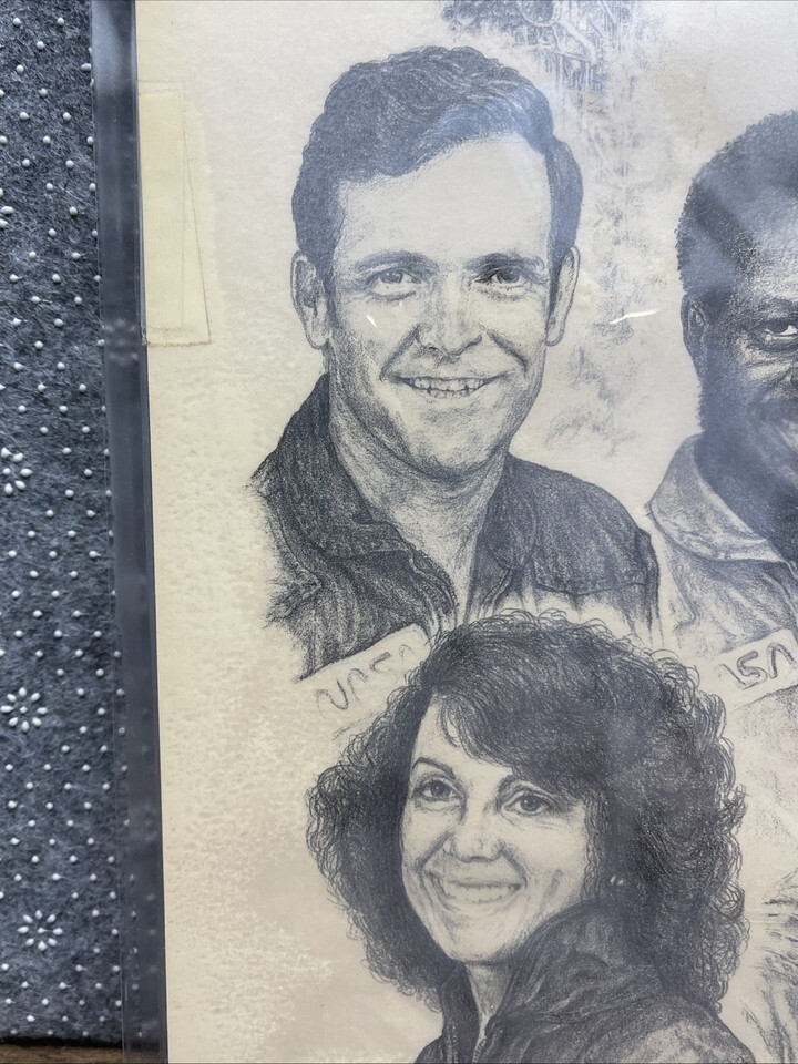 - NASA Engineer Owned Challenger Crew 1986 Laminated Sketch Print By Underwood CV