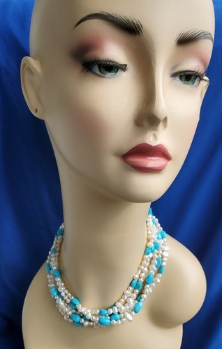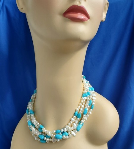 - NATIVE American Artie Yellowhorse Turquoise Pearl Sterling 5 Strend Necklaces